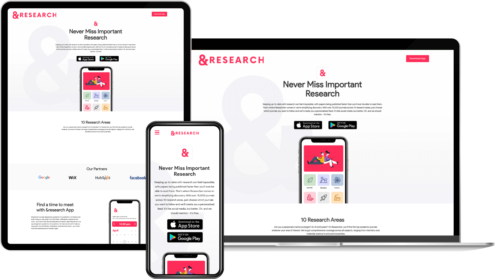 Digibros built and designed the Researcher App’s landing page. The landing page was designed to be simple, interactive and intuitive.
